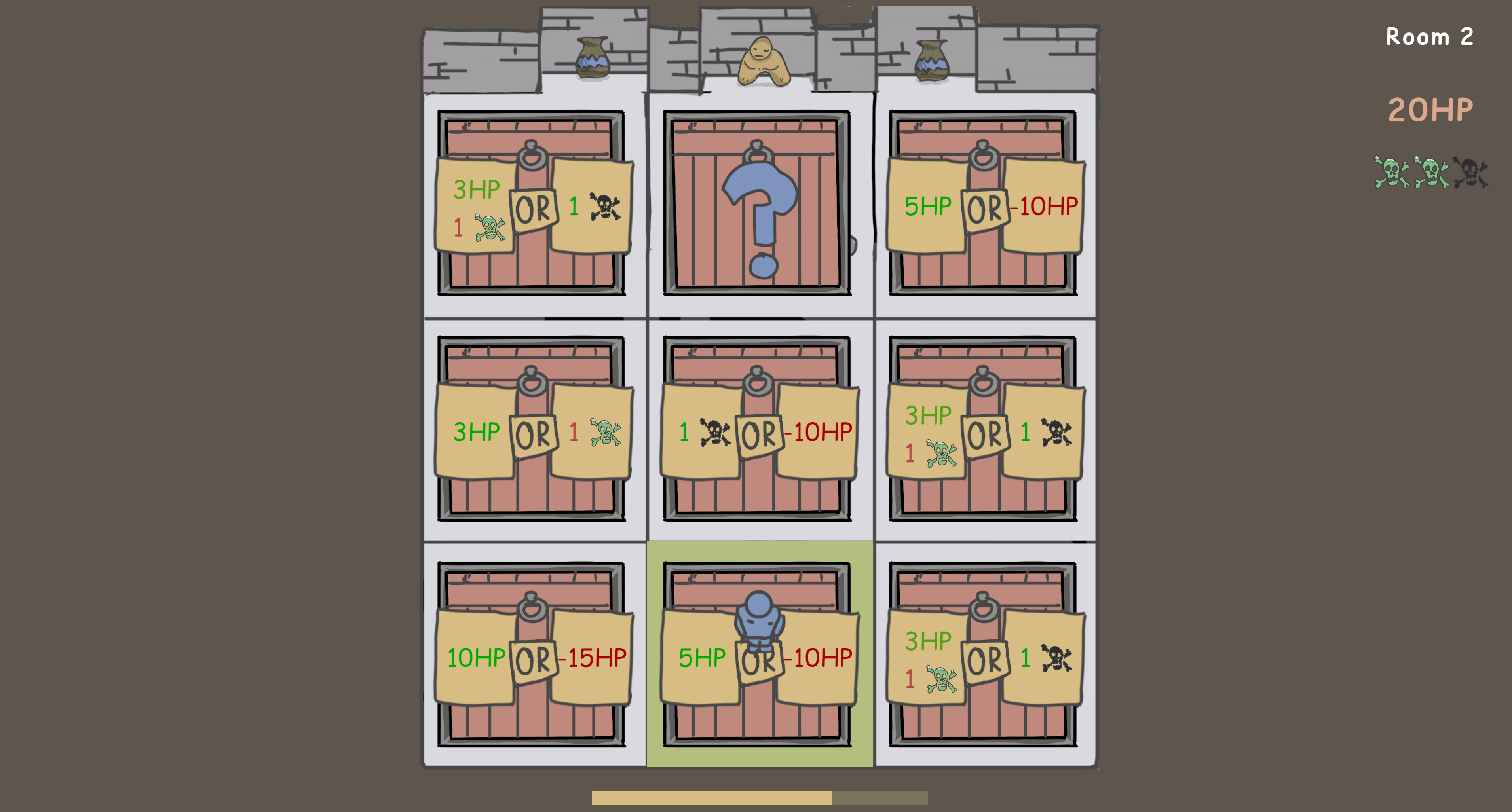 Mysterious doors — Some are hidden, some are revealed, and others come with a price: health, poison, or antidotes.